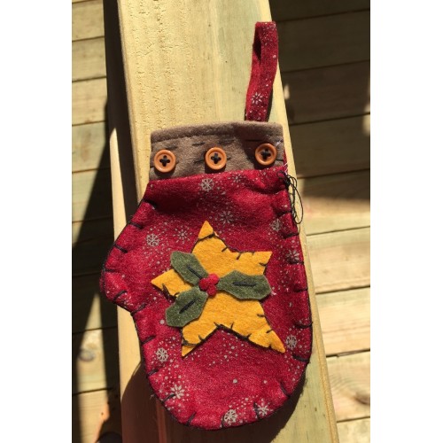 7D3915 - Christmas Felt Mitten Burgundy with Holly and Gold Star