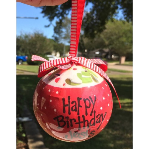 Christmas Ornament 9545 Red Happy Birthday Jesus Ball