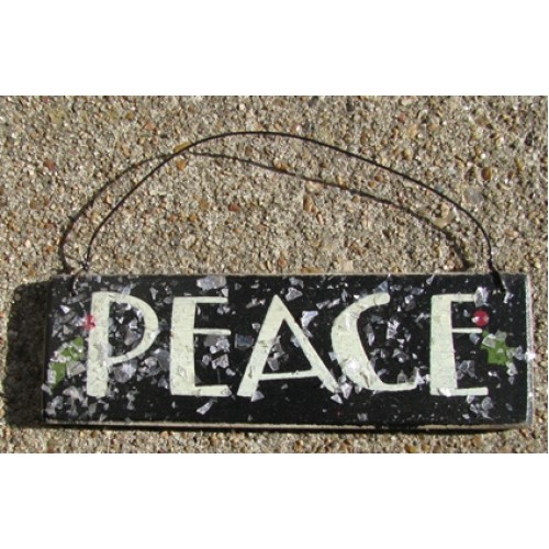 GH5166P - Peace wood sign, measures 4-1/2 inches wide by 1 inch high. This Mini-sign is a great addition for trees or wreaths