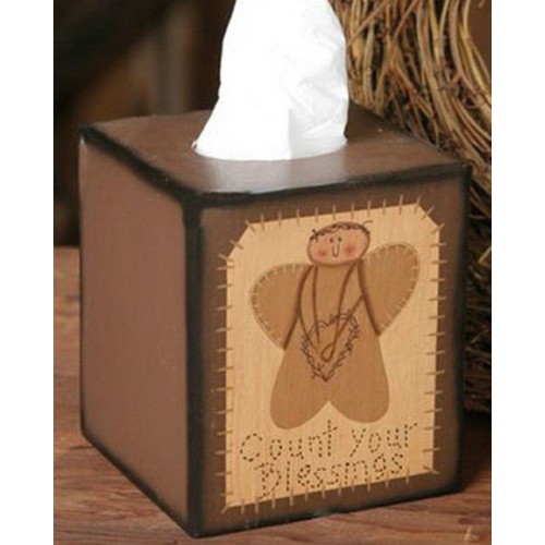 3B009 - Primitive Count Your Blessing Tissue Box, measures 5 1/4"W x 6"H x 5 1/4"D and Tissues not Included