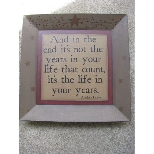 32135Y- And in the end it's not the years in your life that count, but it's the life in your years. Abraham Lincoln. Wood Plate that measures 12 inches by 12 inches squared.