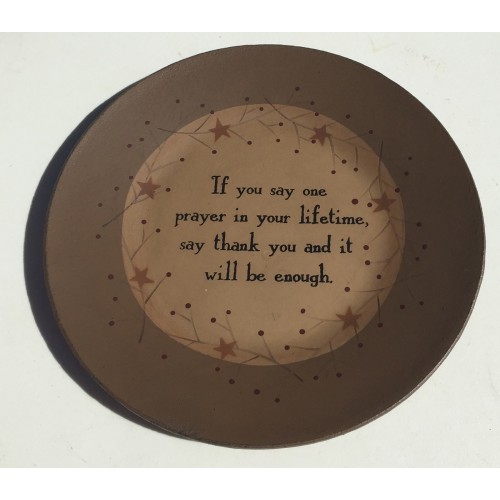 Wood Star Plate 31224P - If you say one prayer in a lifetime, say thank you an that will be enough. Measures 10 inches in diameter.