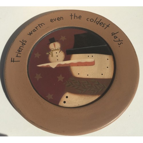 Primitive Wood Plate 31278F - Friends warm even the coldest days. Measures 9 1/2 inches in diameter
