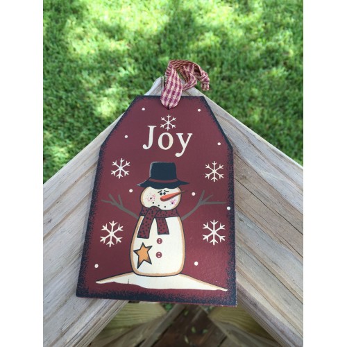 Primitive Wood Gift Tag 206-69483 Joy Black Snowman Tag Ornament