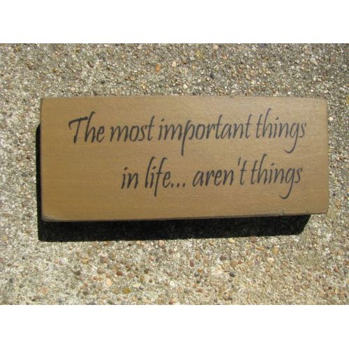 31433AT-The Most Important Thing in life..aren't things wood block, measures 6 inches wide by 2 1/2 inches high, gold in color with black writing