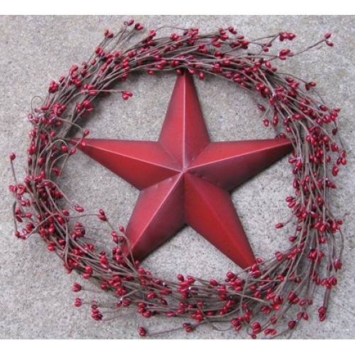 STW1- Vine Wreath with berries and Metal Star, measures 12 inches in diameter and star is 9 1/2 inches in diameter and hangs by wire
